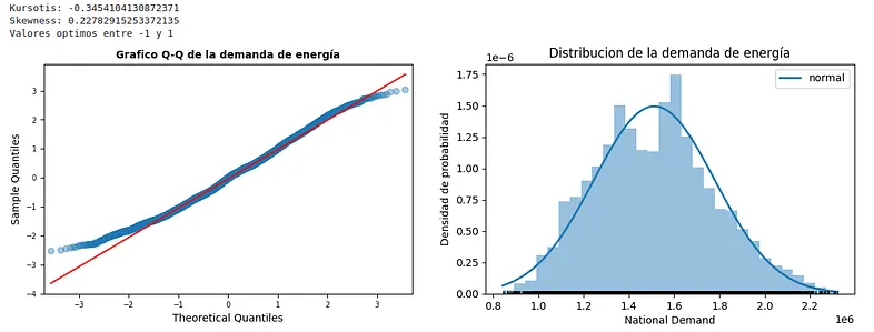 The result is a probability distribution very similar to a theoretical Gaussian distribution. Both Kurtosis and Skewness values are within the optimal parameters. In case these values were outside the intervals, we could perform a box-cox transformation on the study variable to improve both the shape of the tails and the symmetry of the distribution.